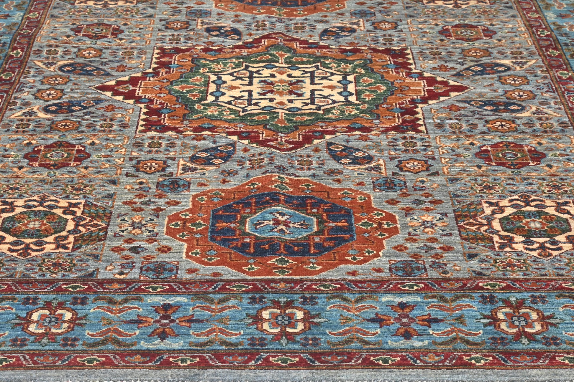 This mamluk is of exceptional quality, and exhibits a particularly high knot-count, with just over 200,000 hand-tied knots per square metre.
