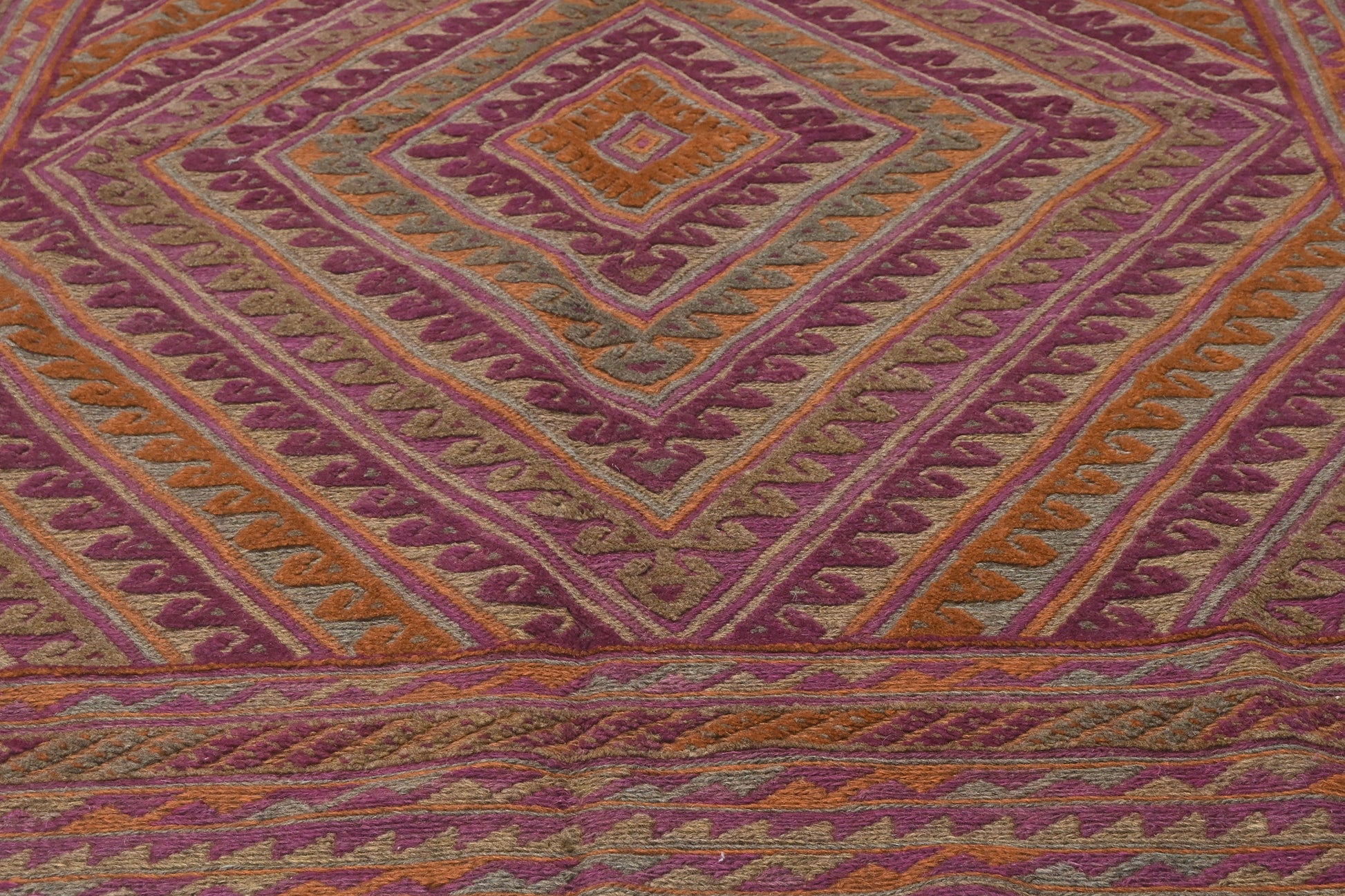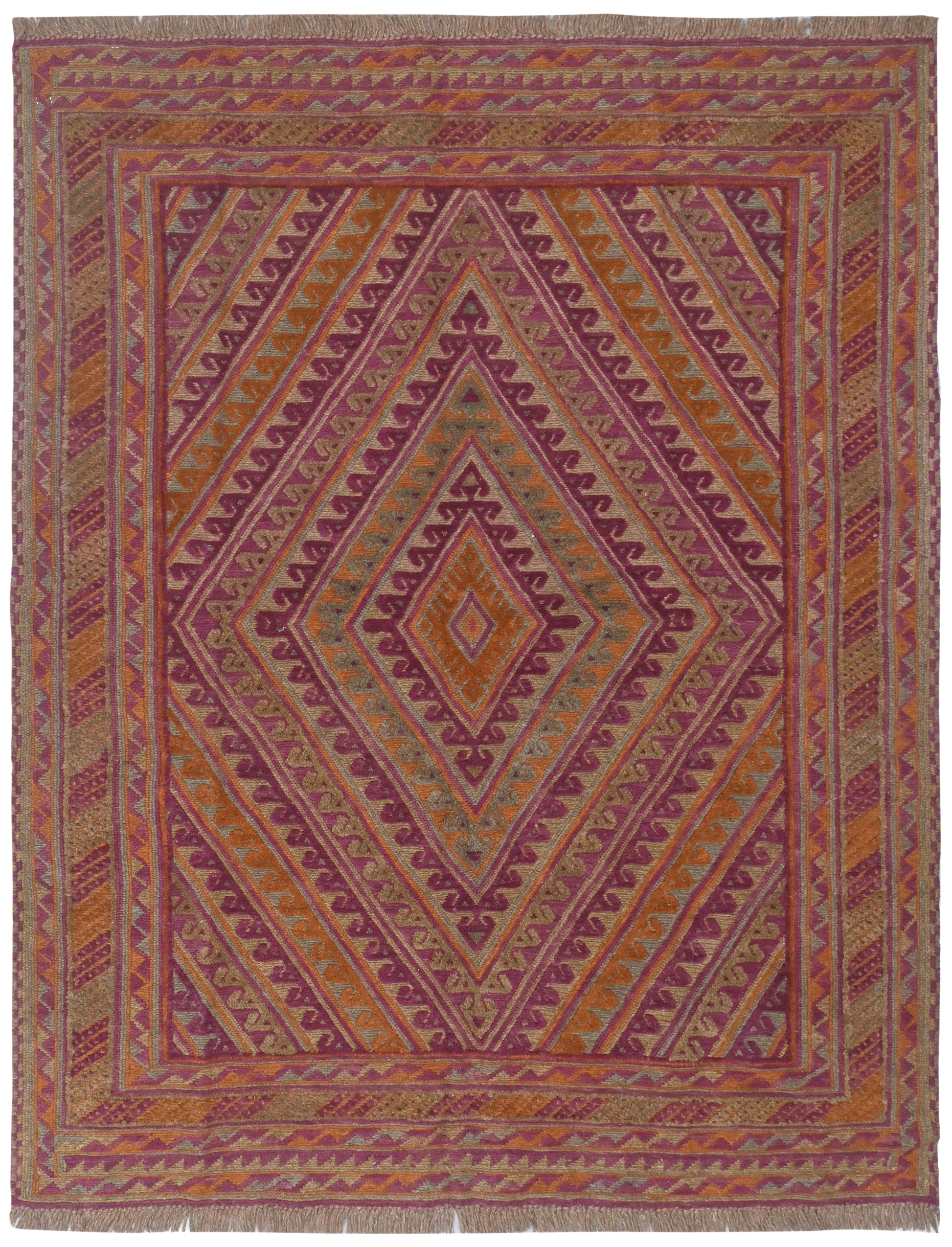 Meshwani rugs are very unusual, due to their construction which blends flat-weave kilim and pile styles. This mixture creates a three dimensional texture across the rug.