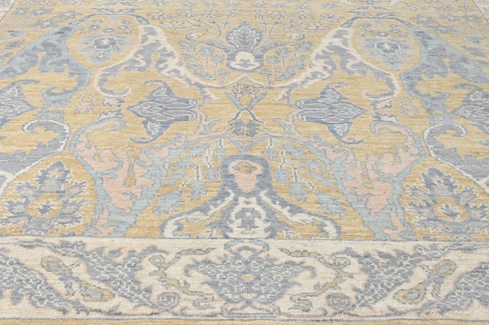Oushak carpets originate in the town of Uşak in western Anatolia, and come in predominantly pastel colours. They are characterised by their large knots and soft, thick pile, making them ideal for living rooms and bedrooms.