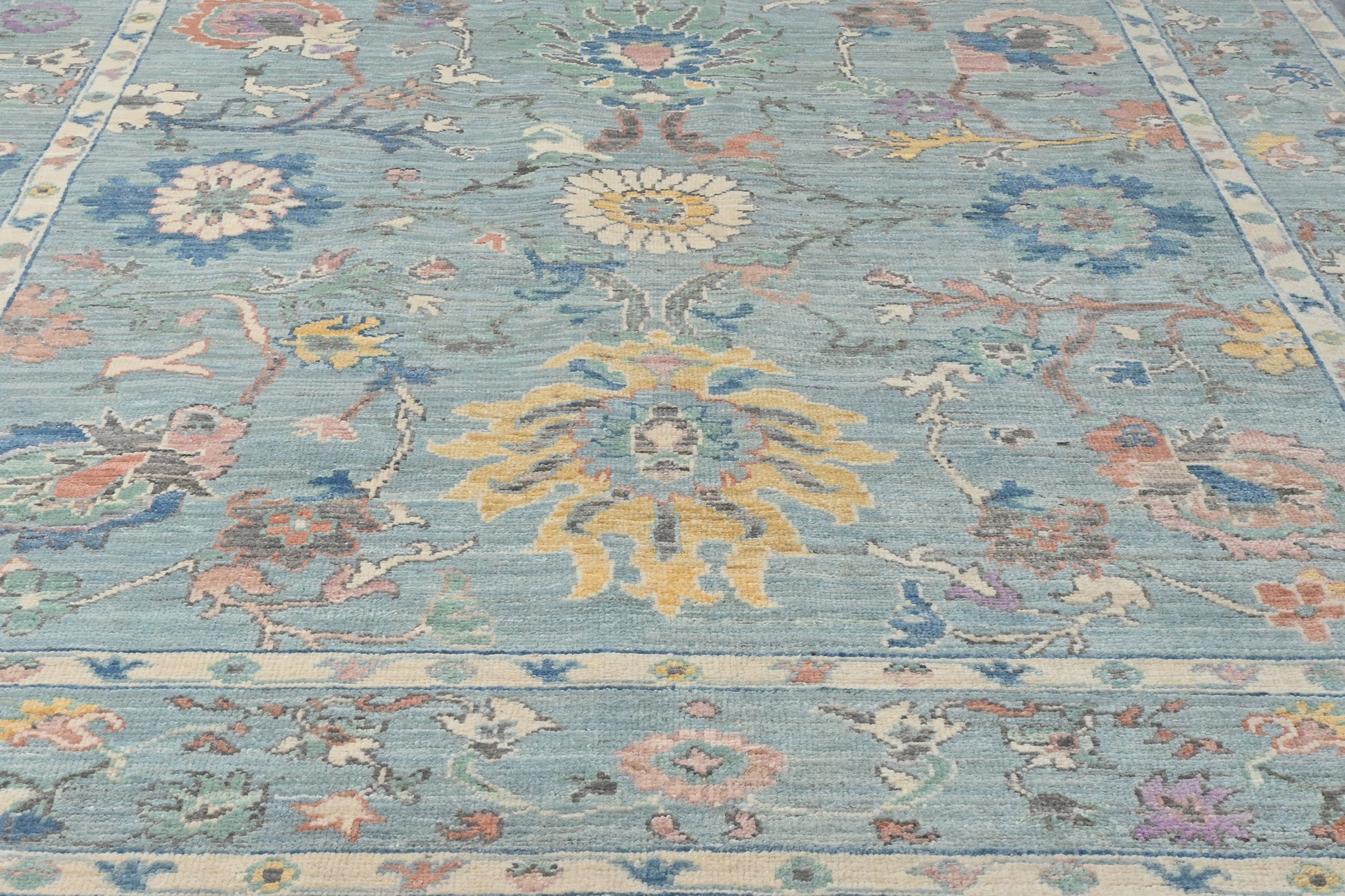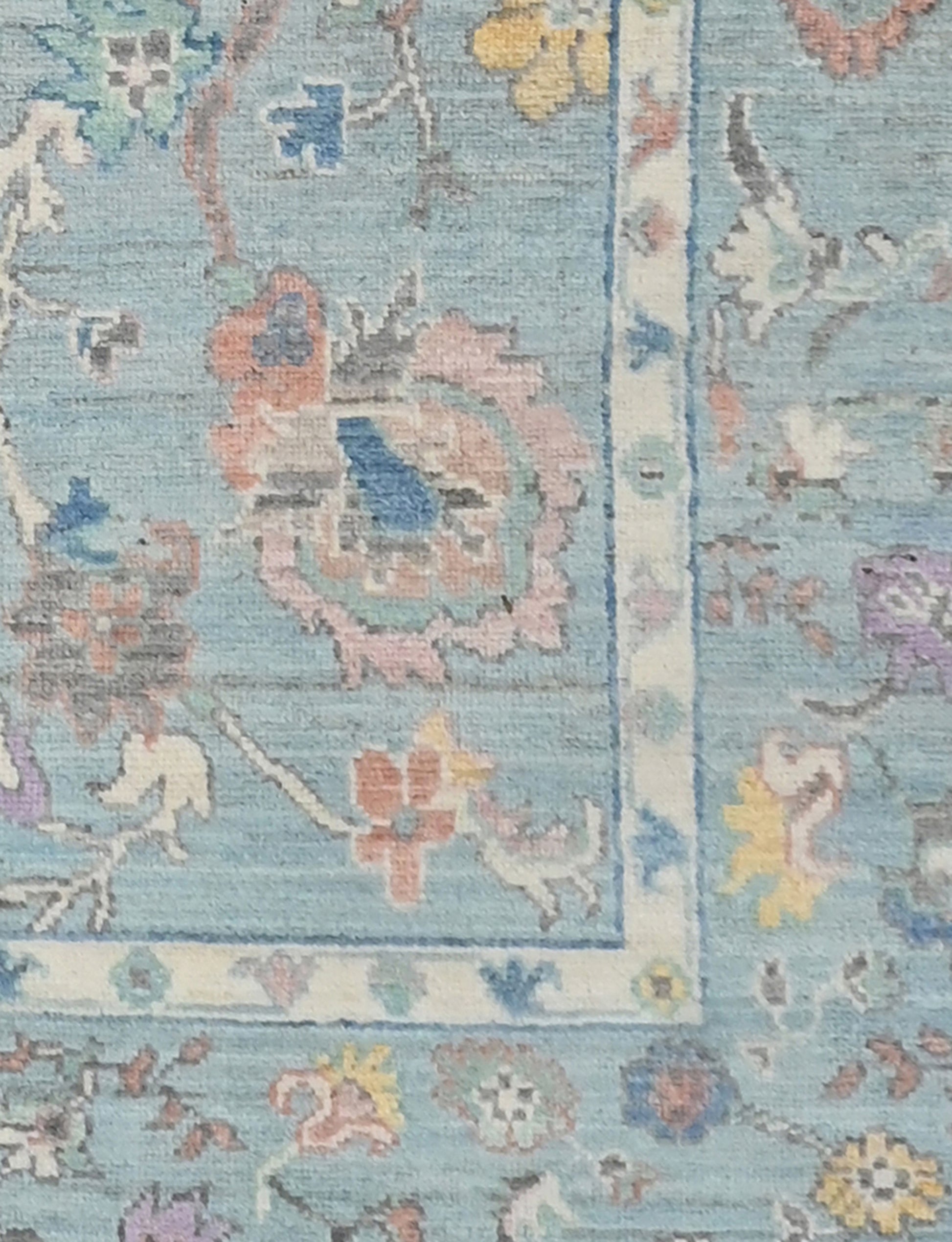 This Oushak was made in Afghanistan, and is knotted on to an all wool warp.