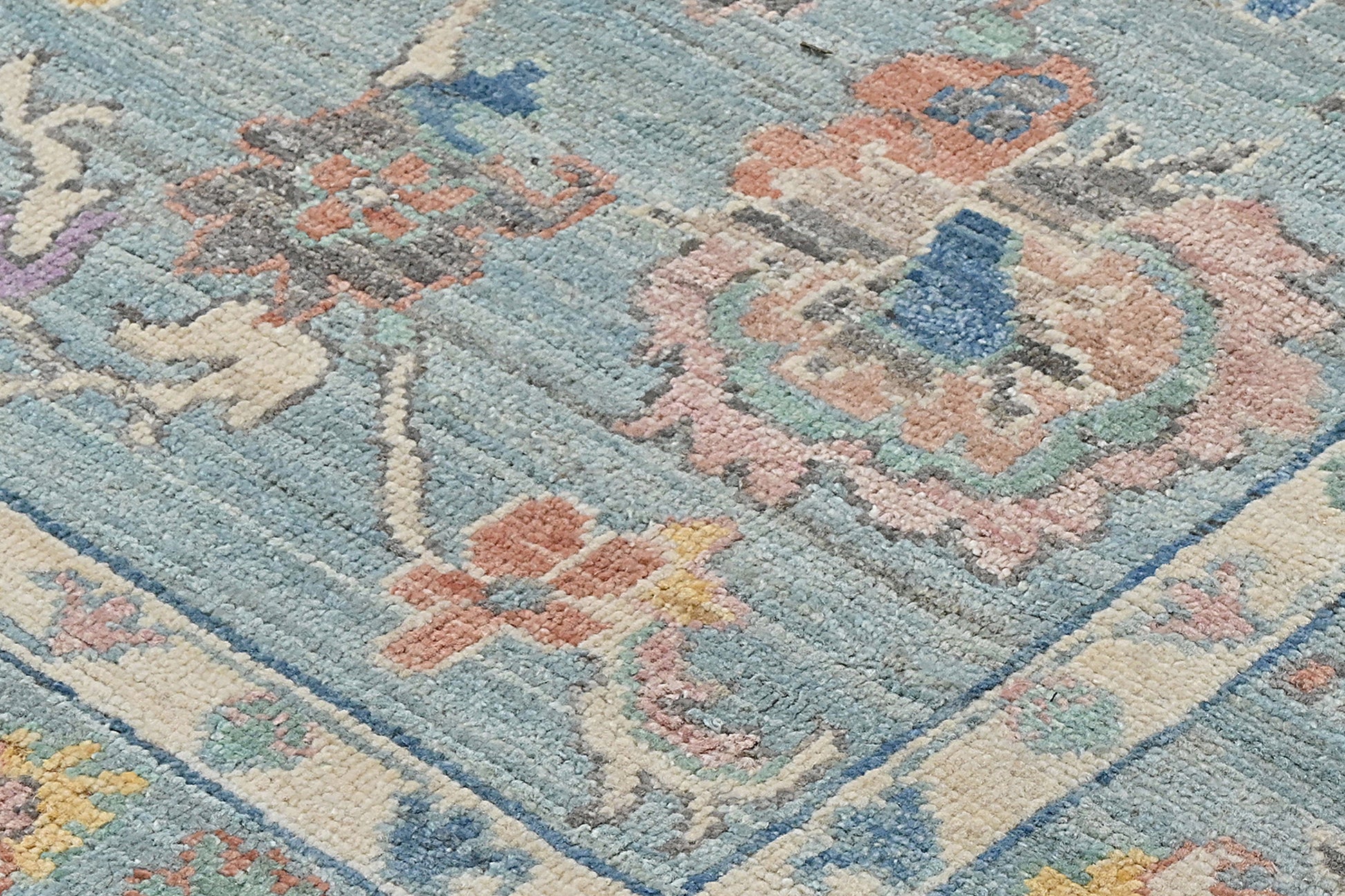 Oushak carpets originate in the town of Uşak in western Anatolia, and come in predominantly pastel colours. They are characterised by their large knots and soft, thick pile, making them ideal for living rooms and bedrooms.