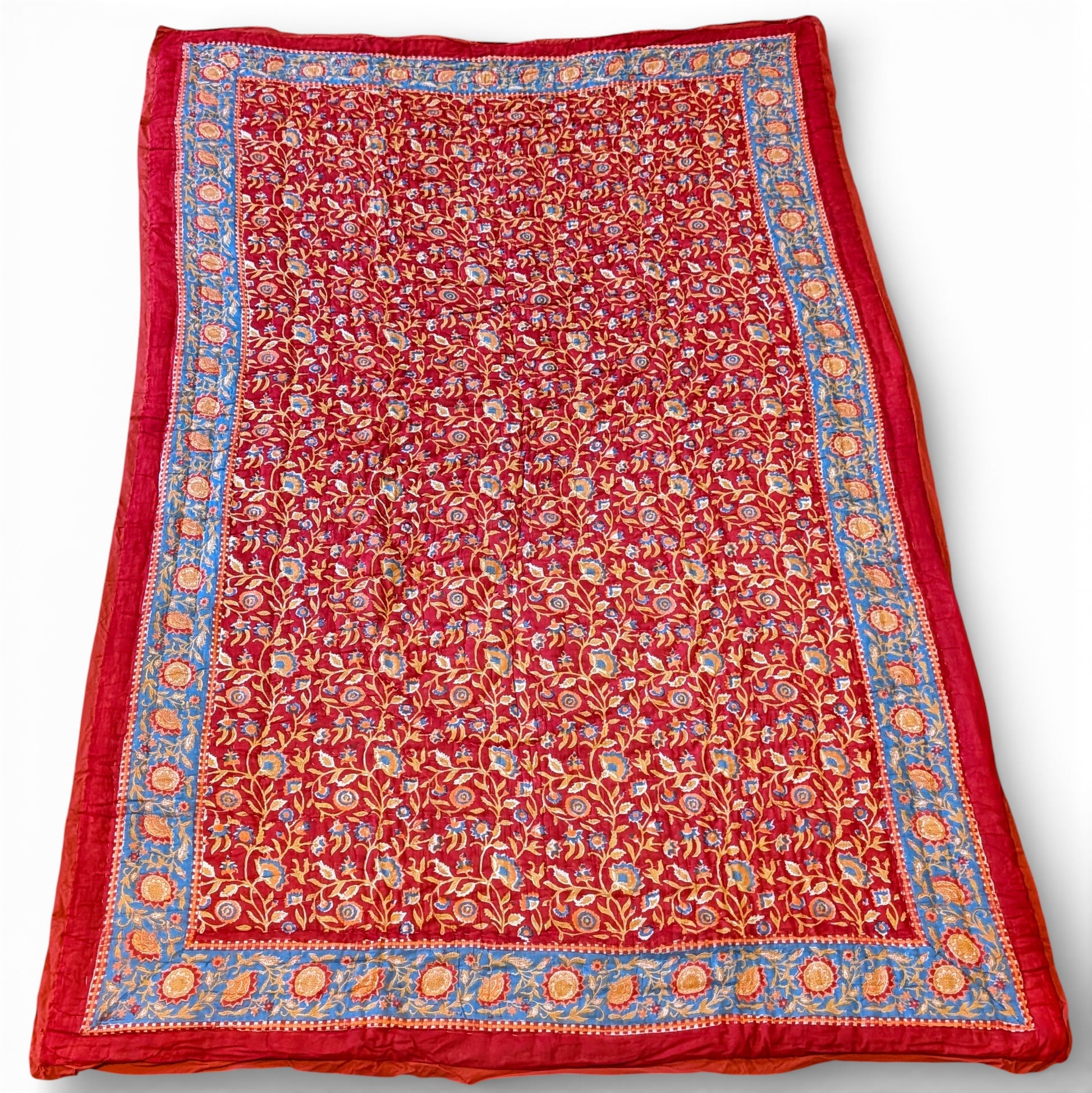 Experience the timeless luxury of an authentic Jaipuri Razai quilt, handcrafted by master artisans in Rajasthan using centuries-old techniques. Filled with layers of carded pure cotton and wrapped in feather-soft mulmul cotton with exquisite hand block prints, these iconic Indian quilts are incredibly lightweight (under 2 kg) yet remarkably warm – perfect for British winters or cool summer nights.