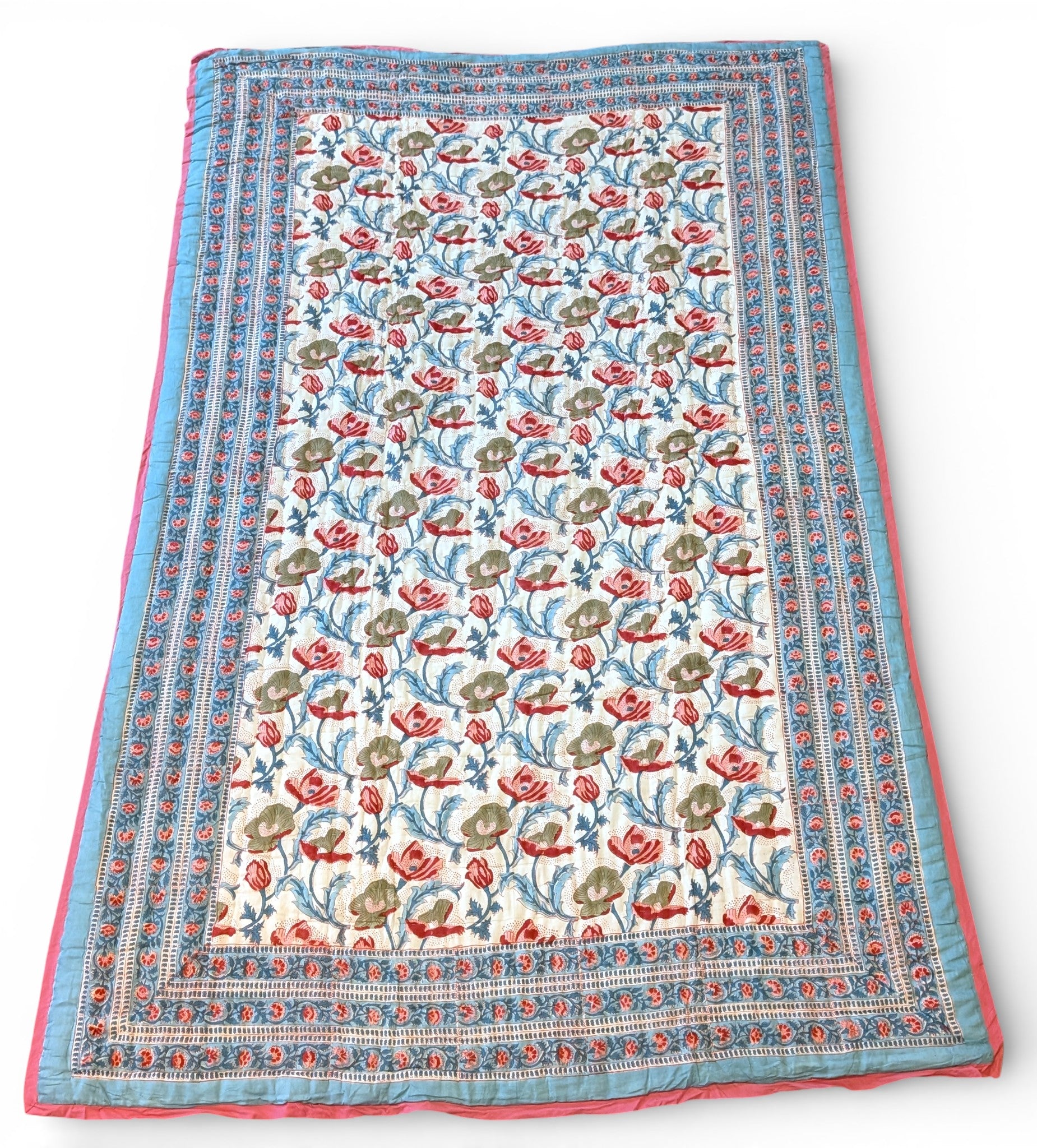 Handmade Jaipuri Razai Quilt – Pure Cotton Block Print Indian Bedspread (King Size)