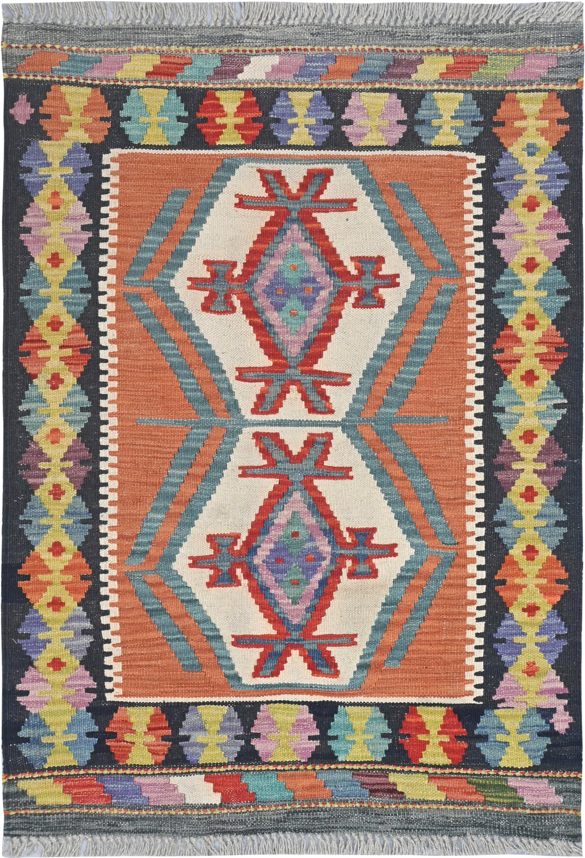 This handmade Kilim rug, measuring 111 x 79cm, is crafted from premium wool using traditional Afghan weaving techniques. Its intricate patterns and durable construction reflect authentic artisanal craftsmanship. The natural wool offers both softness underfoot and long-lasting resilience, making it a timeless addition that enhances any interior with cultural depth and warmth. Perfect for those seeking a unique, quality rug that combines heritage with everyday practicality.
