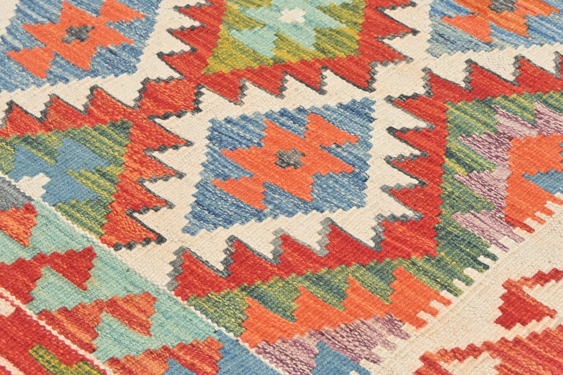 This handmade Kilim rug, measuring 117 x 80cm, is crafted from premium wool using traditional Afghan weaving techniques. Its intricate patterns and durable construction reflect authentic artisanal craftsmanship. The natural wool offers both softness underfoot and long-lasting resilience, making it a timeless addition that enhances any interior with cultural depth and warmth. Perfect for those seeking a unique, quality rug that combines heritage with everyday practicality.