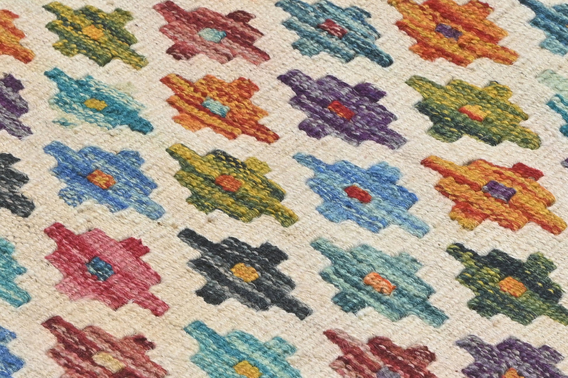 Hand made in Afghanistan using 100% wool.